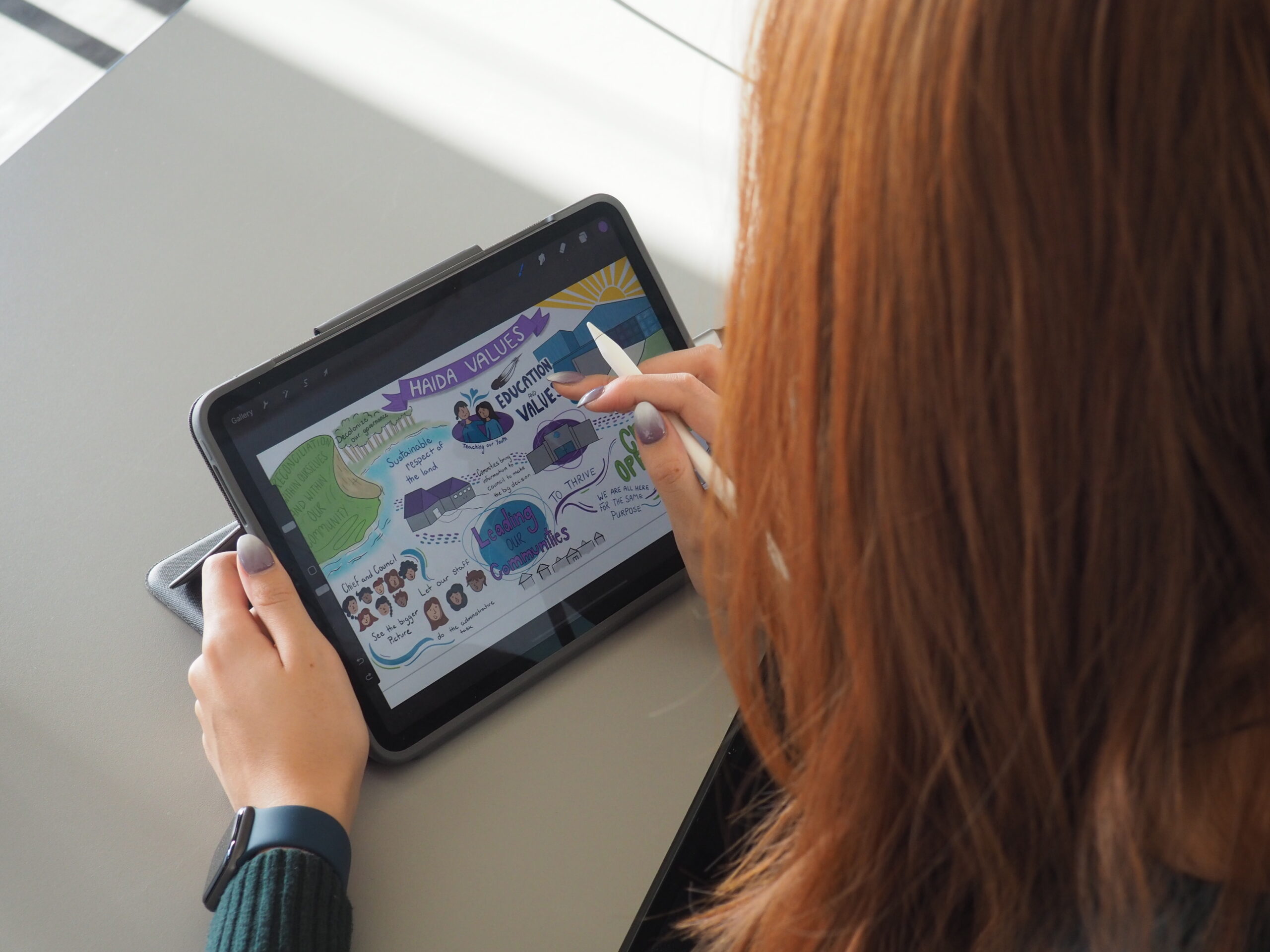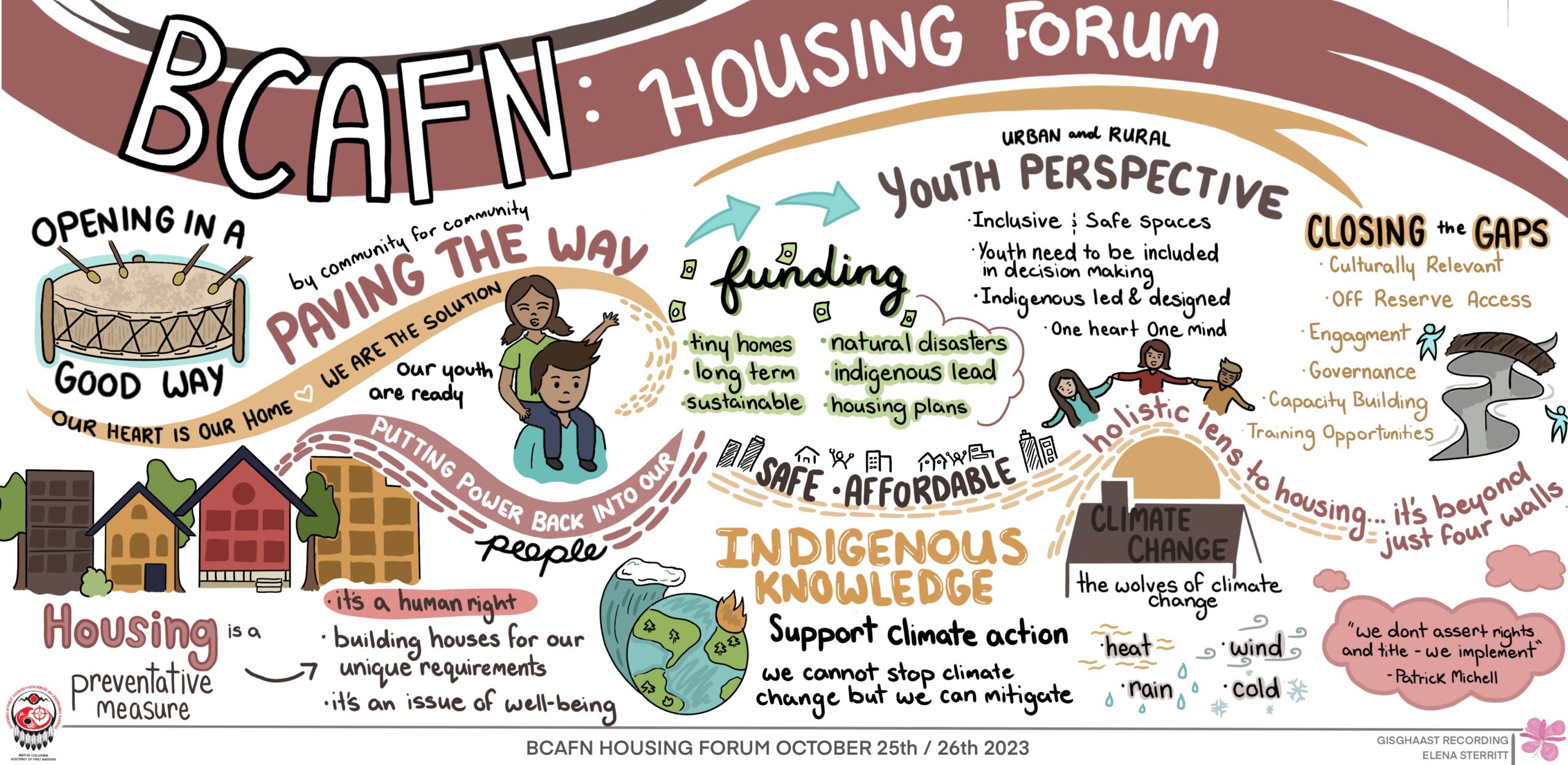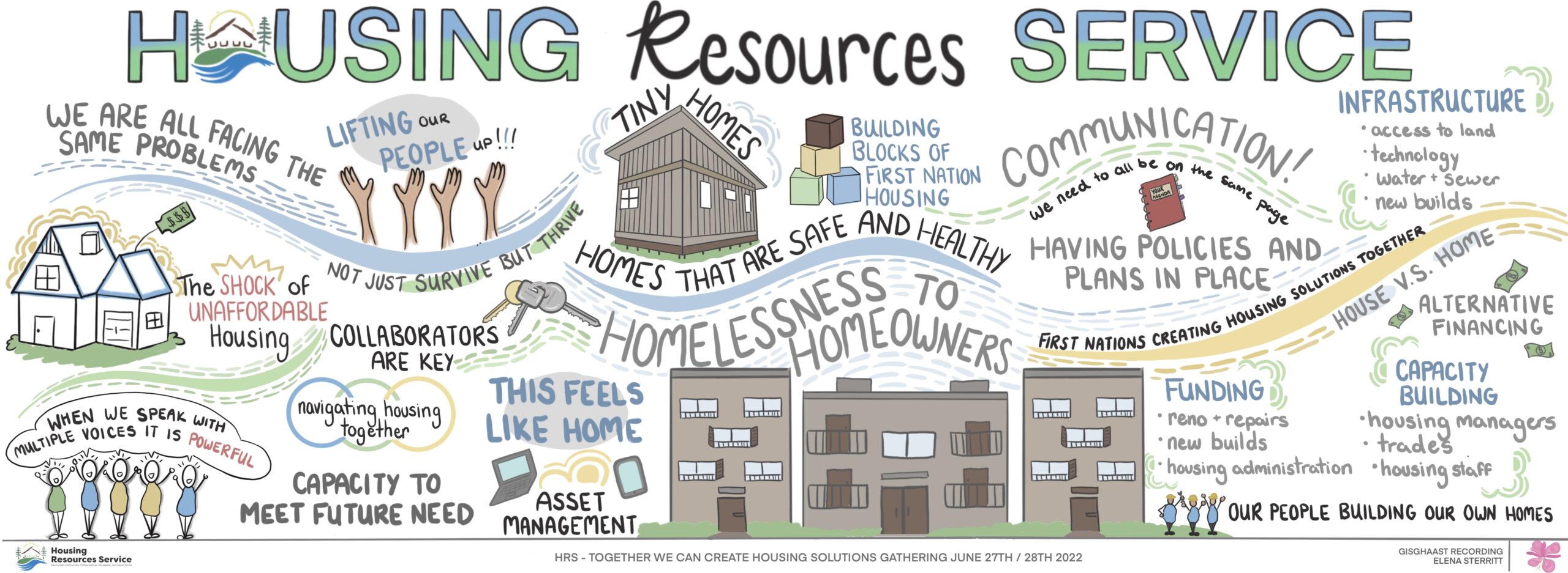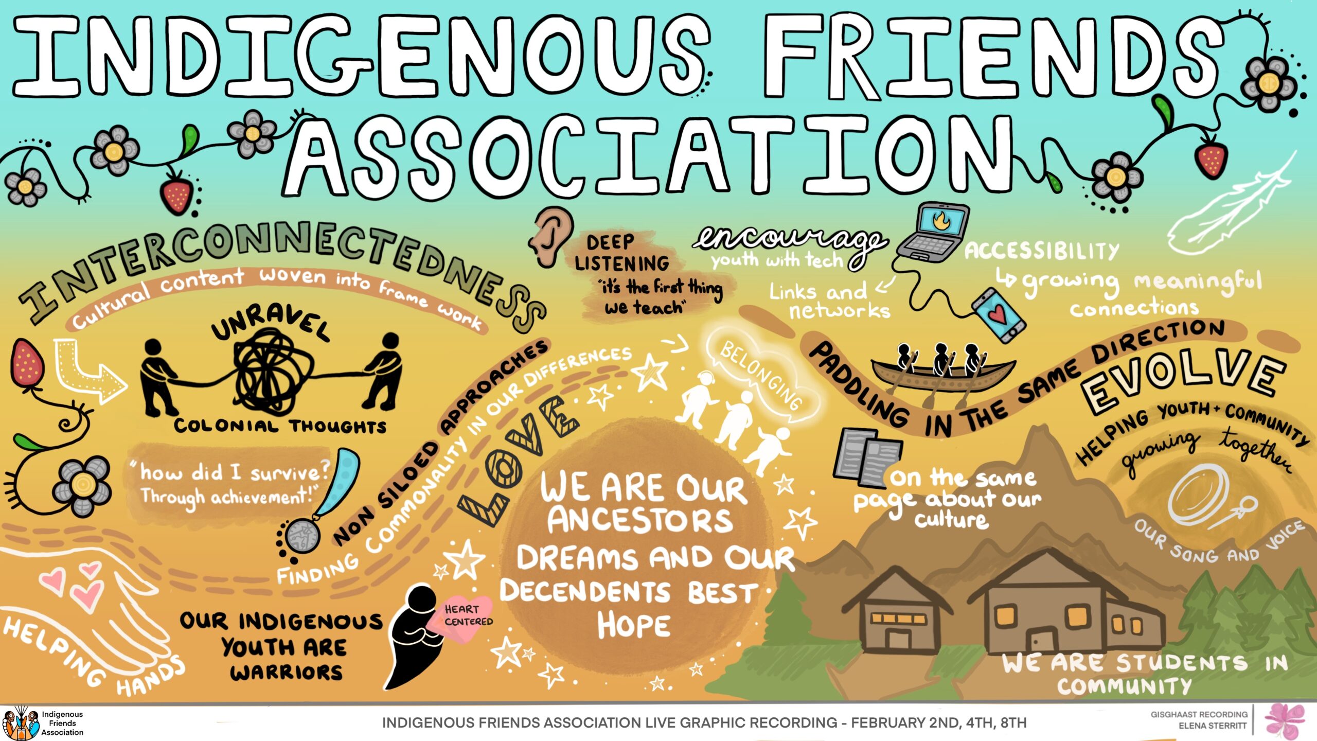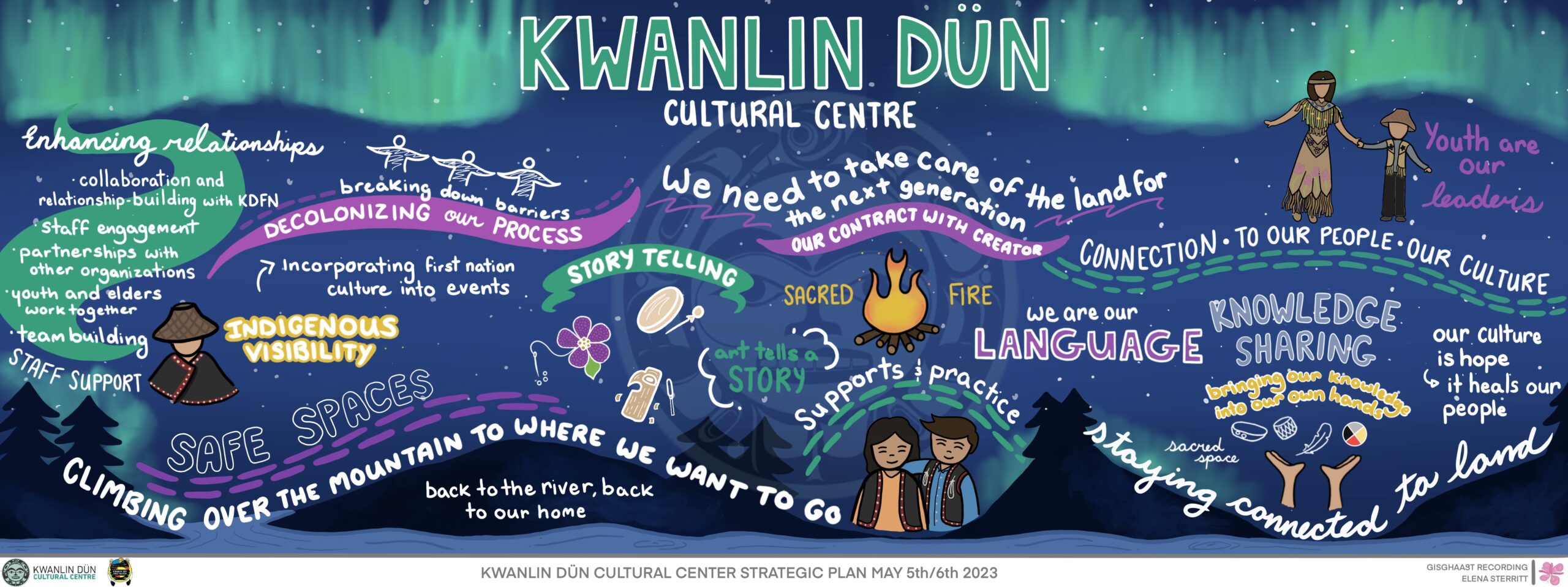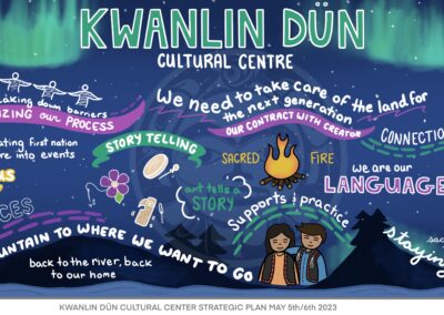 Elena Sterritt is an Gitxsan graphic recorder from Gitanmaax First Nations. Elena brings a unique artistic lens to strategic planning and concepts. She can visualize and cohesively organize ideas in an imaginative and collective way, through use of colour, icons, font and style Elena is able to distinguish key planning aspects and action items and make a connection between expression and practical application.